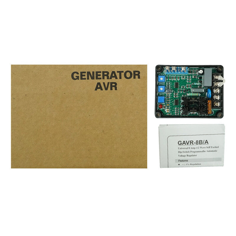 GAVR-8A Automatic Voltage Regulator features a rugged compact design, 110/220/400 VAC Programmable Input with Under Frequency Protection. Also features Soft Start Voltage Ramping and EMI Suppression and a built-in high capacity 8 Amp Fuse to protect the unit in cases of power surges. Package includes 1 x AVRGAVR-8A and 1 x User Manual.